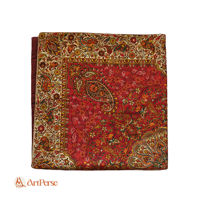 This model is woven as a 7-color Termeh tablecloth with a high density of 360, containing 40% high-quality silk. This blend offers a shimmering, soft, and luxurious texture, ideal for interior decoration or as a refined and timeless gift. The traditional Persian patterns, combined with rich colors, give this fabric unparalleled beauty.