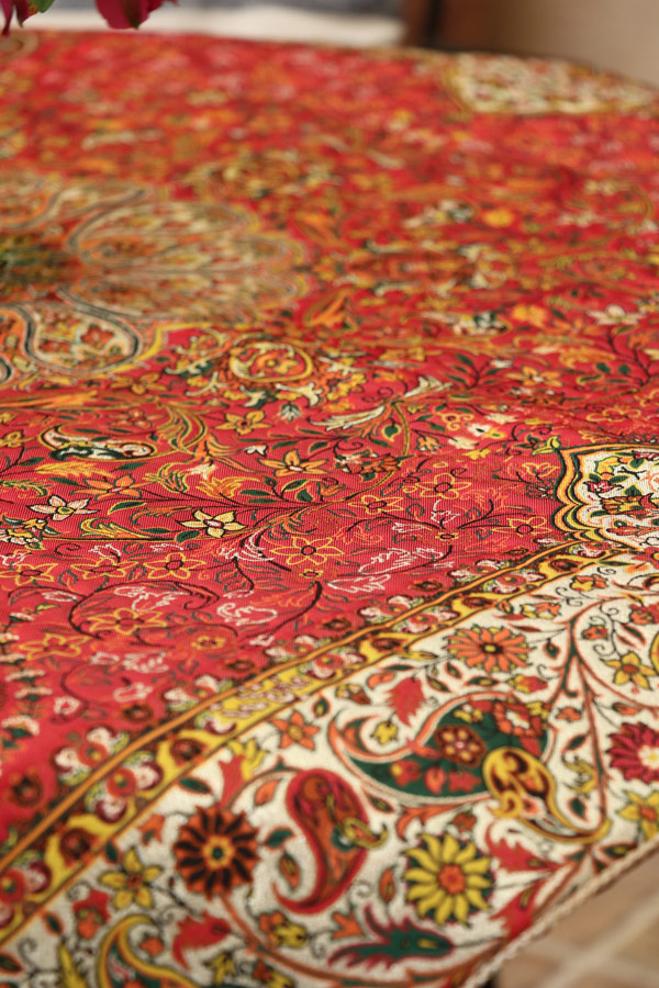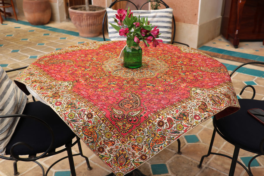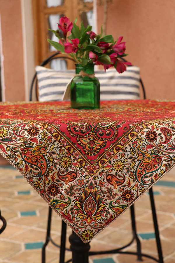 The making of Termeh is a delicate and laborious art that uses silk, cotton, wool, or animal hair fibers and attractive colors such as orange, black, red, brown, and green. This magnificent fabric has varied uses; from tablecloths and napkins to furniture coverings and precious gifts for ceremonies and special occasions.