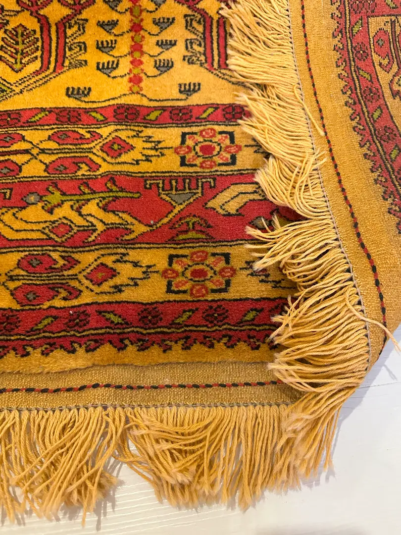 Its generous dimensions (184 × 102 cm) and natural wool pile give it incomparable warmth and softness. Each pattern, every geometric line, and each stylized flower tells a story – that of the Khorasan plains, the silk caravans, and the wild beauty of Iran’s landscapes.